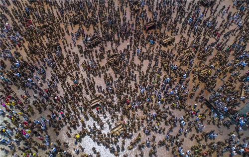 “摸你黑”狂欢节人们边狂欢边“摸你黑……摸你黑……”并用纯天然药物“娘布洛”配制涂料相互涂抹、互相祝福