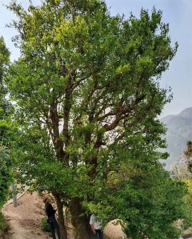 00岁的“二嘎子茶王树”。当地茶人告诉我,“二嘎子”是山里人对过渡型茶树的一种俗称,它的叶子既有野性的刚烈,又带